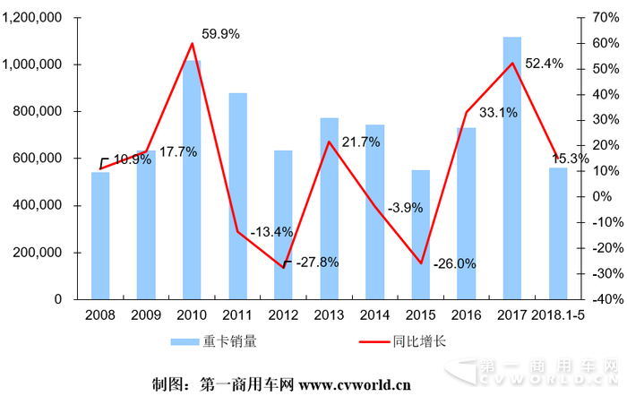 2008-2018年重卡市場(chǎng)年度走勢(shì)圖