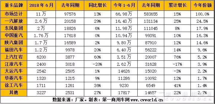 今年上半年,重卡市場累計銷售66.98萬輛,比去年同期的58.37萬輛實現(xiàn)增長15%。