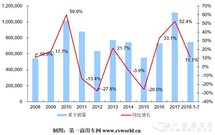2008-2018年重卡市場走勢圖
