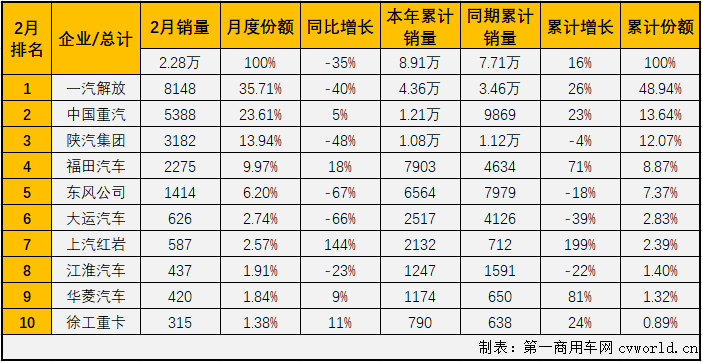 2月重卡市場排行